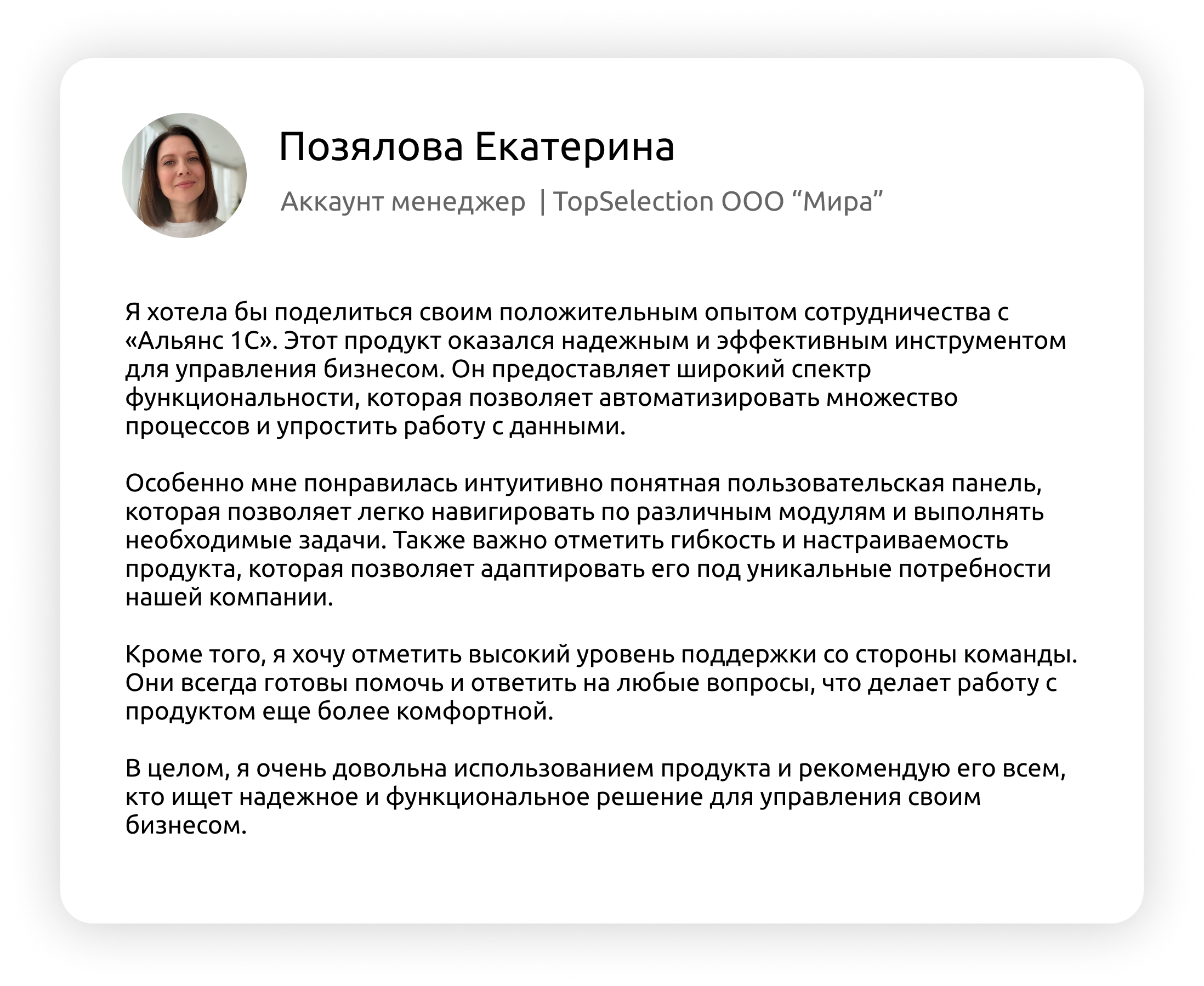 Всем рекомендую «Альянс 1С»! Организация деятельности и поиск партнеров, стал намного проще. Спасибо большое данному сообществу!
